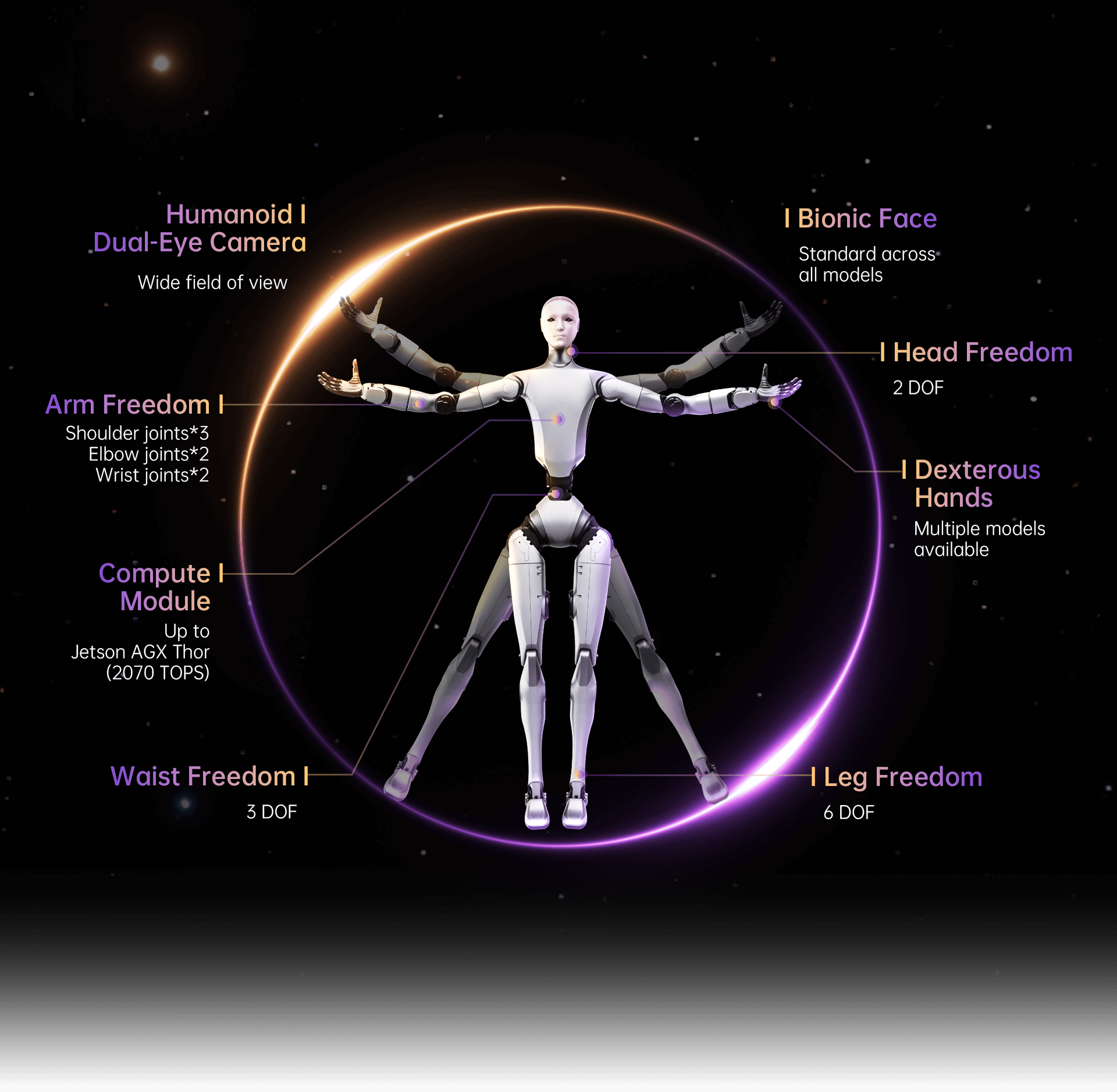 31 degrees of freedom, 360N·m joint torque, and precise dynamic movement replication. Algorithms evolve continuously via OTA.