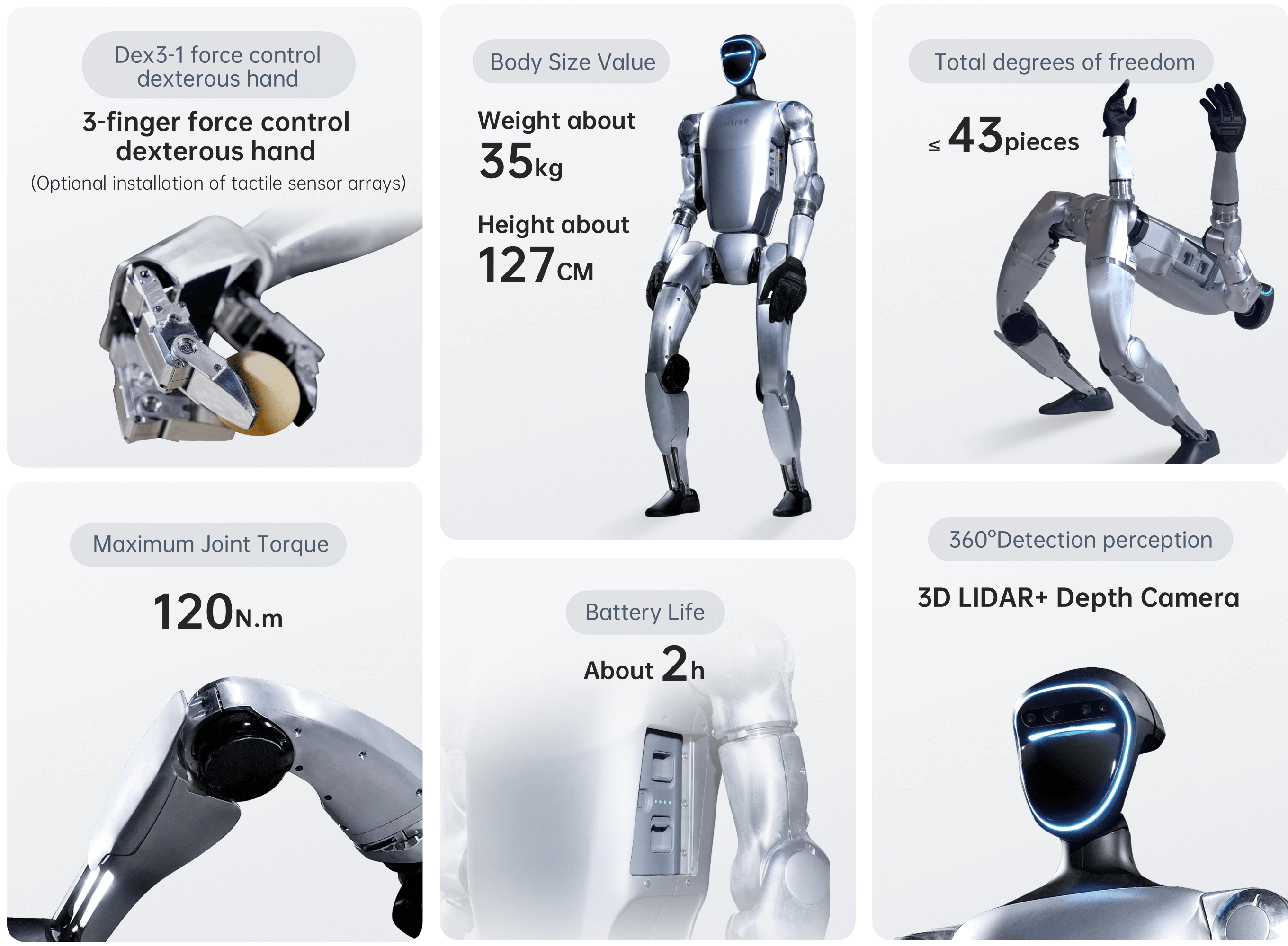 • Equipped with 2 Dex3-1 force-controlled
