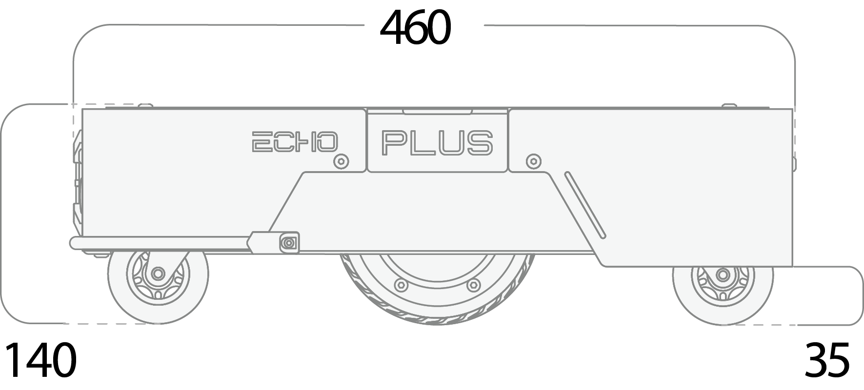 The Plus model is a six-wheeled chassis with automatic charging, making it suitable for commercial use.